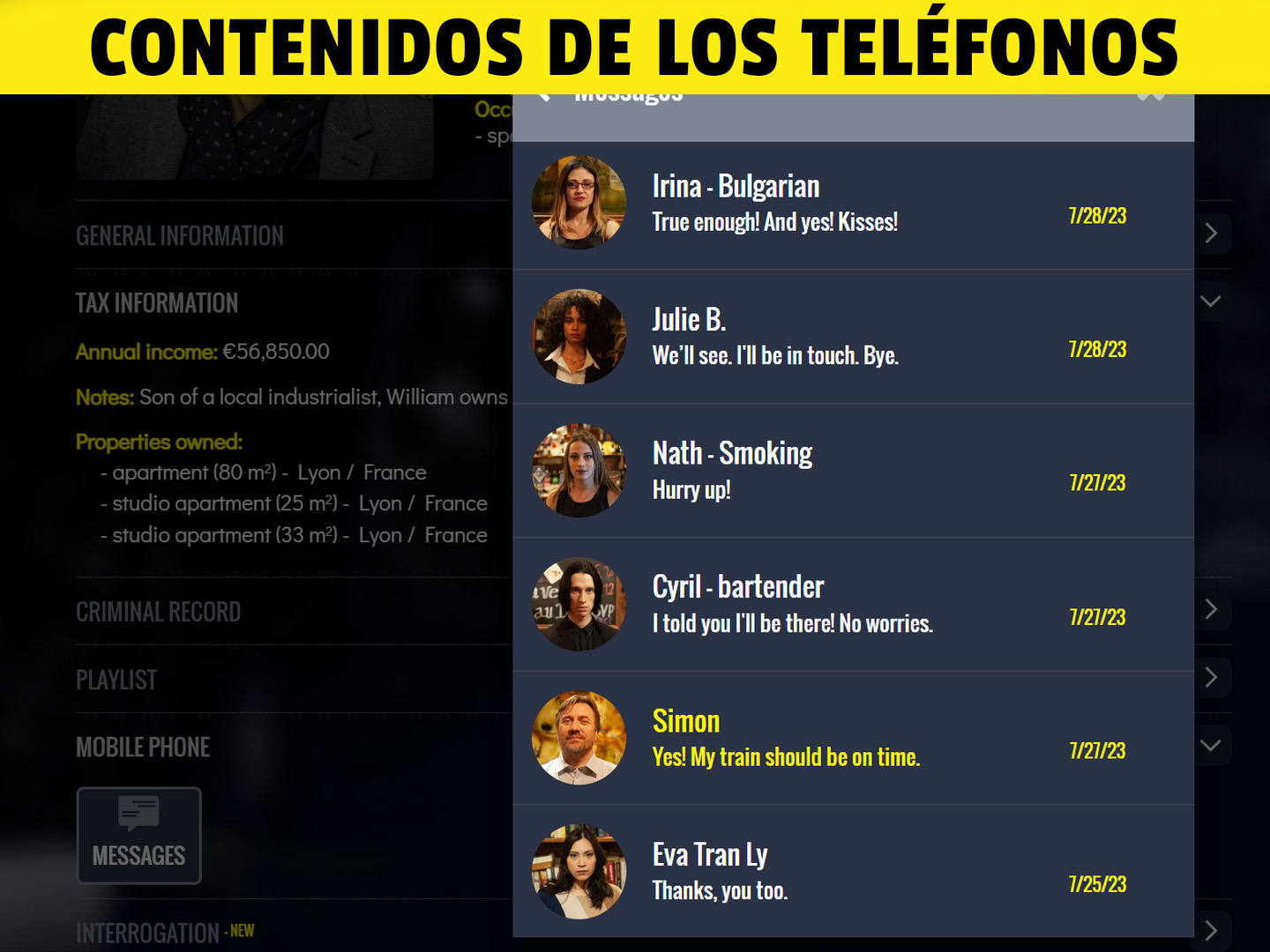 Fotos de la escena del crimen, pruebas numeradas, testimonios en video, perfiles de sospechosos, registros, interrogatorios interactivos en video... Puedes investigar solo o en equipo.