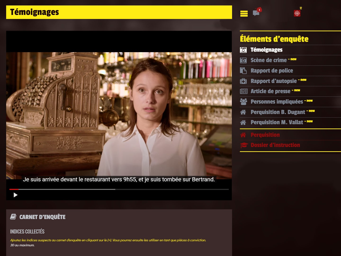 Votre objectif sera de remplir le dossier d’instruction : Il faudra trouver le coupable, son mobile, les pièces à conviction qui permettent de l’incriminer et proposer une peine juste !