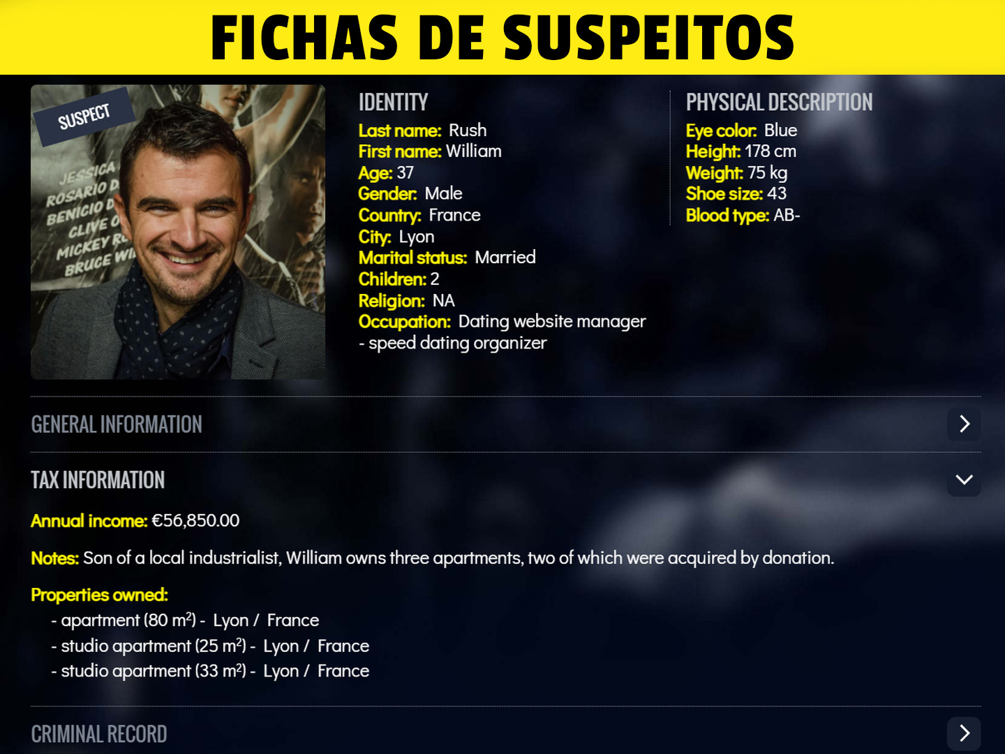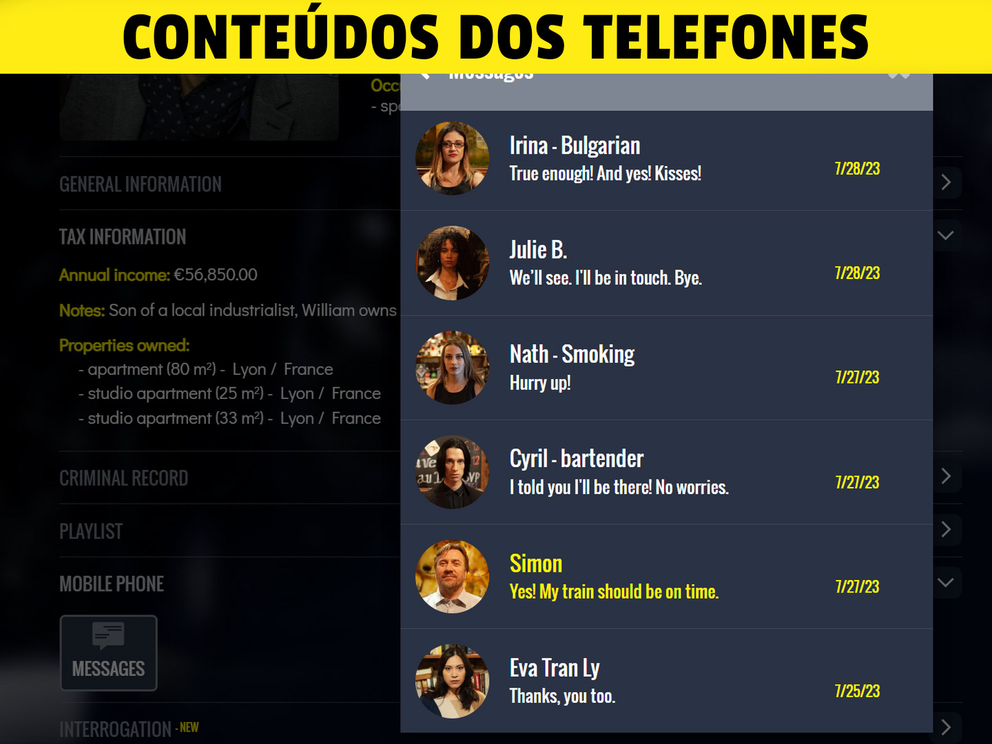 Fotos de cena de crime, pistas numeradas, depoimentos em vídeo, fichas de suspeitos, buscas, interrogatórios interativos em vídeo… Você conduz a investigação sozinho ou em equipe.